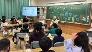 当日はクラスの子どもたちから温かな歓迎を受け、予定時間を超えてしまうほど、36年ぶりの教壇での授業と子どもたちとのディスカッションを楽しまれていました。