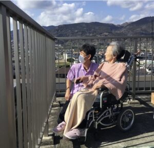 やわらかな陽ざしの中、外気浴の時間をお過ごしいただきました。