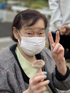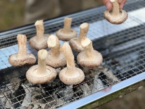ご自身で収穫した椎茸をそのまま炭火で焼いて試食!