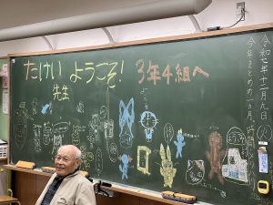 介護付き有料老人ホーム「ザ・プライム燈庵」にお住まいの武井溥様が開成南小学校3年4組の授業に登壇してきました。