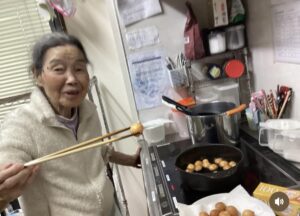 「こうやるのよ」と手際よく進めてくださったり、笑顔で生地をこねたり、揚げたてを味見したり…♪