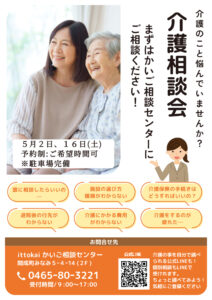 5月も介護相談会を開催いたします!個別対応、ケアマネージャーさんの同席も可能です。お気軽にお問合せください。