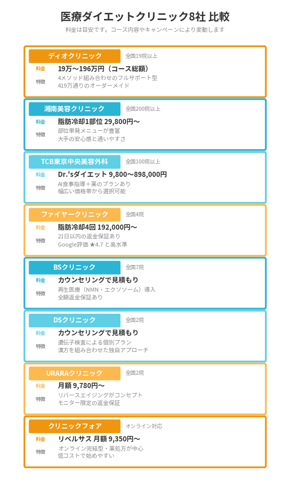 ディオクリニックは419万通り以上のオーダーメイドプランを提供しており、体質・目標体重・希望期間によって料金が変動します。 そのため、公式サイトには定額の料金表が掲載されておらず、カウンセリングで初めて見積もりが提示される仕組みです。