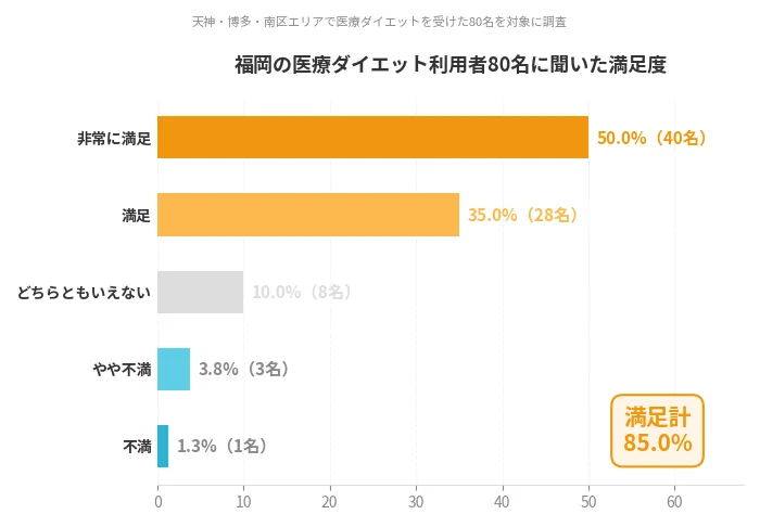 - 実際に医療ダイエットを受けた80名へのアンケートによる満足度・費用感の実態