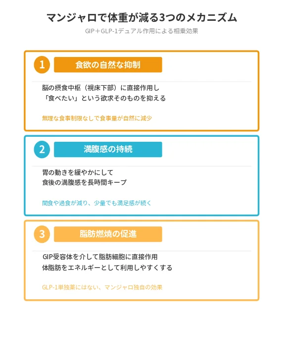 マンジャロを突然中止すると、抑制されていた食欲が戻りリバウンドしやすくなります。