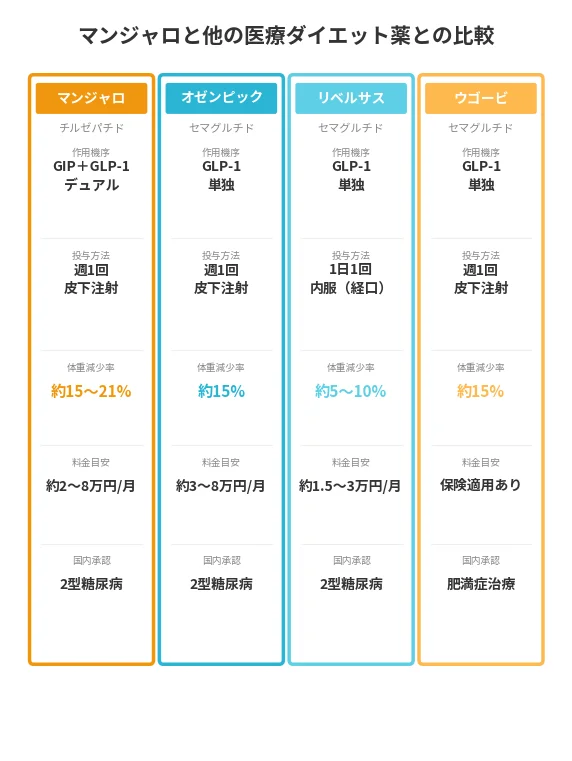 マンジャロとほかの医療ダイエット薬の違い