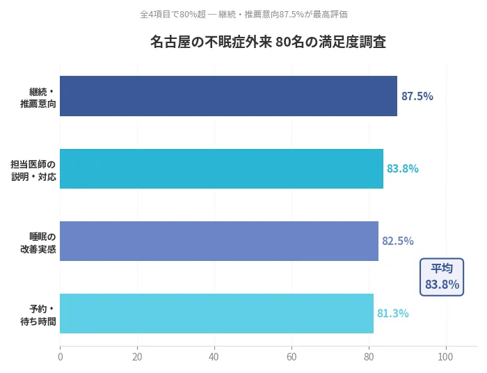 • 実際の通院者80名のアンケートに基づく名古屋の不眠症外来の満足度データ