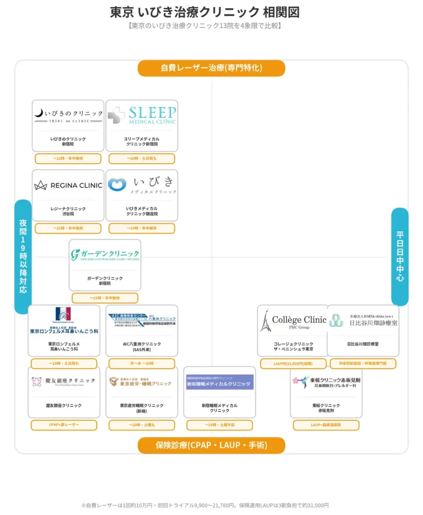 - 東京都内13院のいびき治療クリニックの費用・治療法・診療体制の一括比較