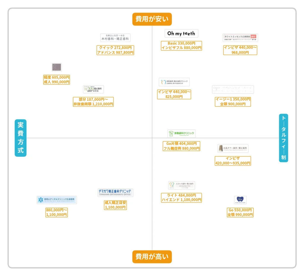 - 項目を入力広島市内13院のマウスピース矯正クリニックを費用・資格・立地・特徴で徹底比較