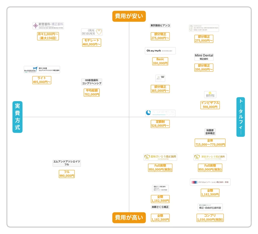 | 秋葉原リヨンドール歯列矯正歯科クリニック | 秋葉原駅 徒歩3分 | 部分矯正385,000円〜 / 全体矯正715,000〜770,000円(税込・調整料込) | 男女 | あり(無料) | 無料(0円) | 無料(0円) | 土日 | ダイヤモンド | 東京都ランキング3位(2025年7月)。2年間後戻り保証。光加速装置0円(他院10〜20万円相当)。LINEサポート無料 |