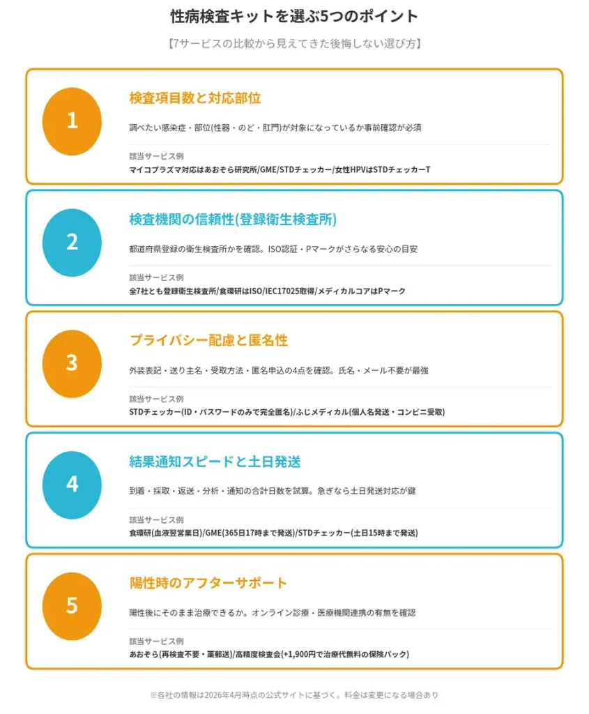 - 登録衛生検査所の有無・プライバシー配慮・受け取り方法で絞り込む選び方の基準