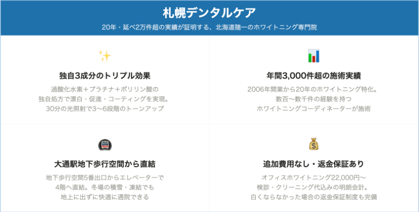 札幌デンタルケア|20年・延べ2万件超の実績が証明する、北海道随一のホワイトニング専門院